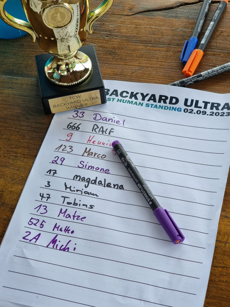 Ein paar Impressionen der zweiten Auflage des TCW Backyard Ultra am 2.September 2023.
